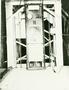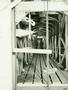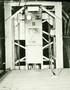 Black and white photographic print of the control for the stage bridges and the operator during the remodelling of the Royal Opera House stage, 1900-1901