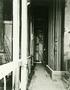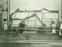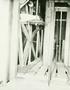 Black and white photographic print of the counterweight loading gallery, with wooden chocks, during the remodelling of the Royal Opera House stage, 1900-1901