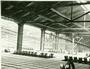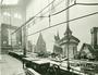 Black and white photographic print of the Paint Shop above the rear of the stage at the Royal Opera House, showing a backcloth for 'Die Meistersinger von Nürnberg' on the large paint frame